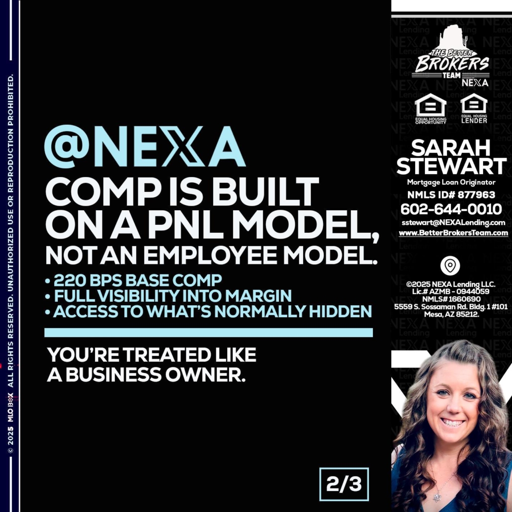 2 OF 3 - Sarah Stewart -Mortgage Loan OriginatorHi, my name is Sarah Stewart. I’m a Loan Officer with NEXA Lending LLC., offering personalized mortgage solutions, fast customized quotes, great rates and service with integrity.