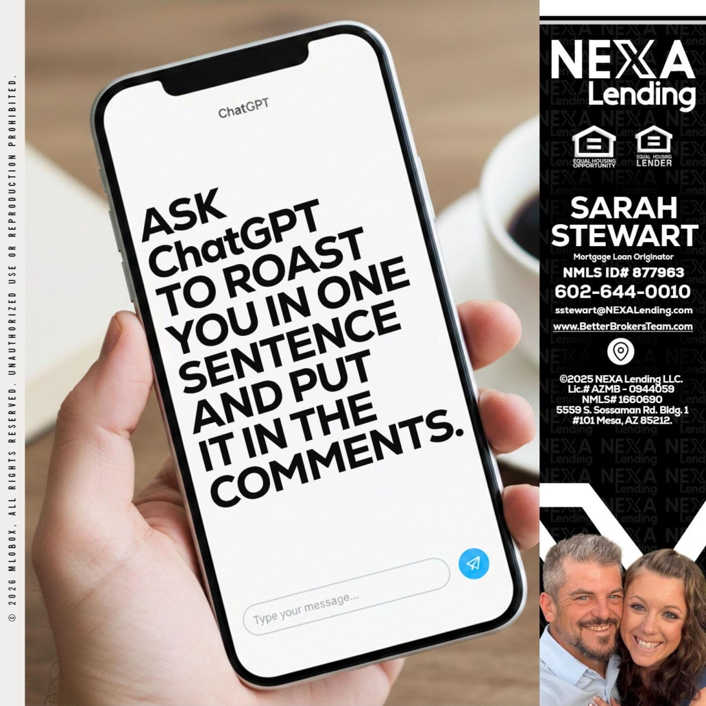 ask chatgpt - Sarah Stewart -Mortgage Loan OriginatorHi, my name is Sarah Stewart. I’m a Loan Officer with Better Broker’s Team LLC, offering personalized mortgage solutions, fast customized quotes, great rates and service with integrity.