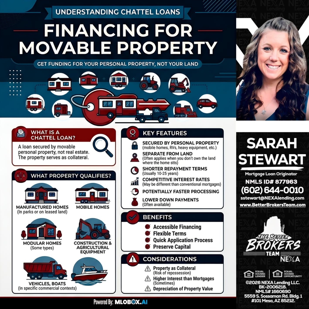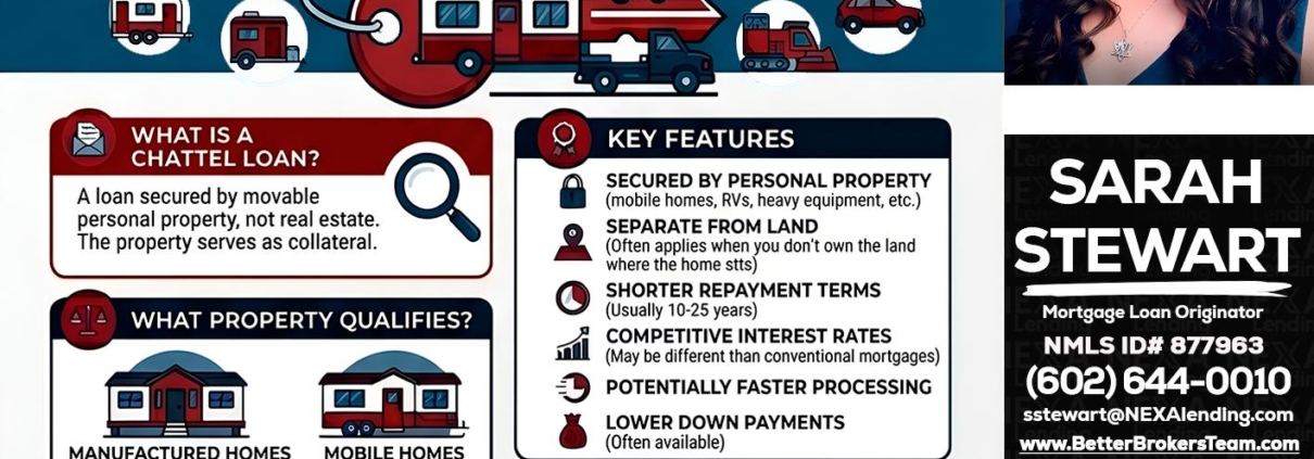 Hi, my name is Sarah Stewart. I’m a Loan Officer offering personalized mortgage solutions, fast customized quotes, great rates and service with integrity. If you’re interested in learning more about the Chattel loan or any other, just let me know and I’ll walk you through your options.