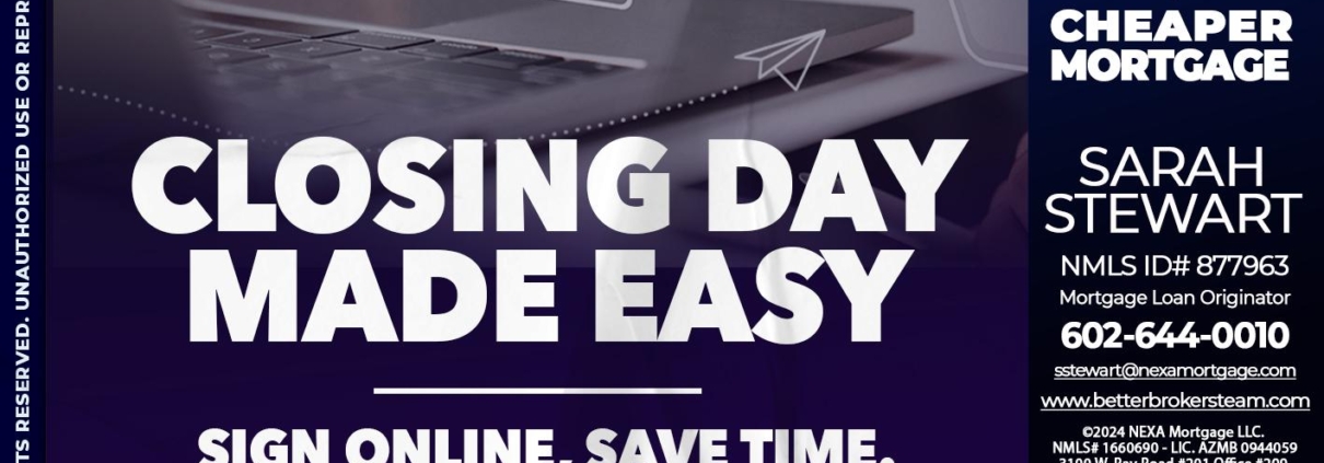 closing day - Sarah Stewart -Mortgage Loan OriginatorHi, my name is Sarah Stewart. I’m a Loan Officer with NEXA Mortgage LLC., offering personalized mortgage solutions, fast customized quotes, great rates and service with integrity.
