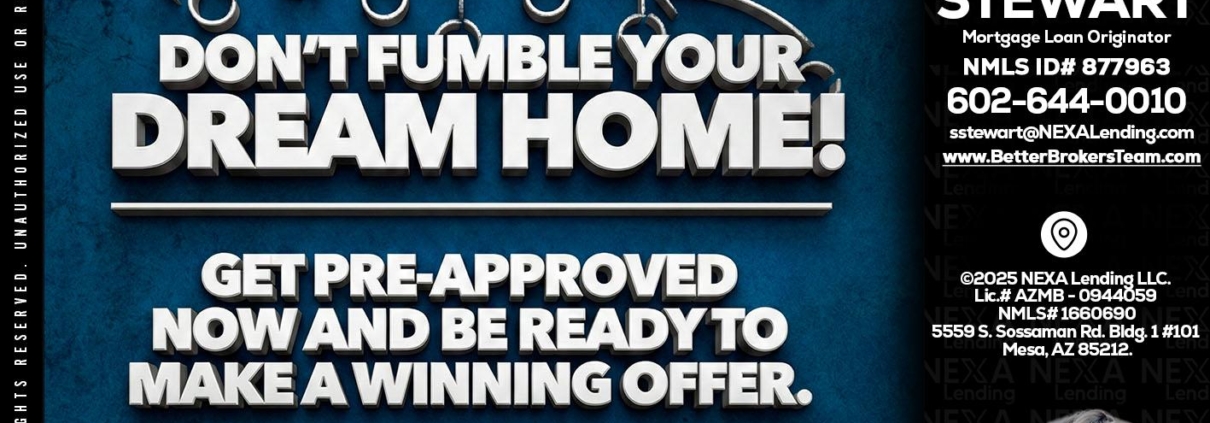 dont fumble - Sarah Stewart -Mortgage Loan OriginatorHi, my name is Sarah Stewart. I’m a Loan Officer with NEXA Lending LLC., offering personalized mortgage solutions, fast customized quotes, great rates and service with integrity.