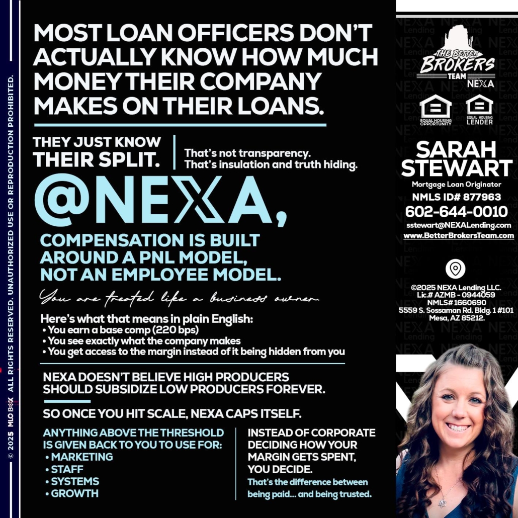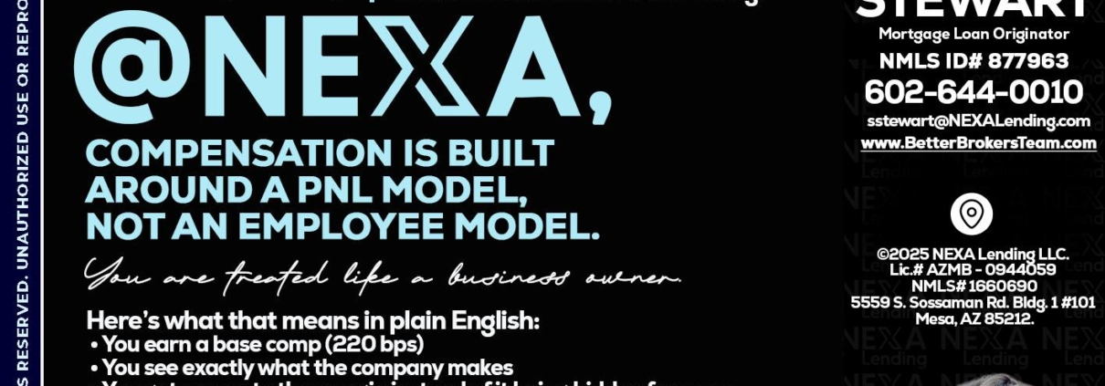 @NEXA - Sarah Stewart -Mortgage Loan OriginatorHi, my name is Sarah Stewart. I’m a Loan Officer with NEXA Lending LLC., offering personalized mortgage solutions, fast customized quotes, great rates and service with integrity.