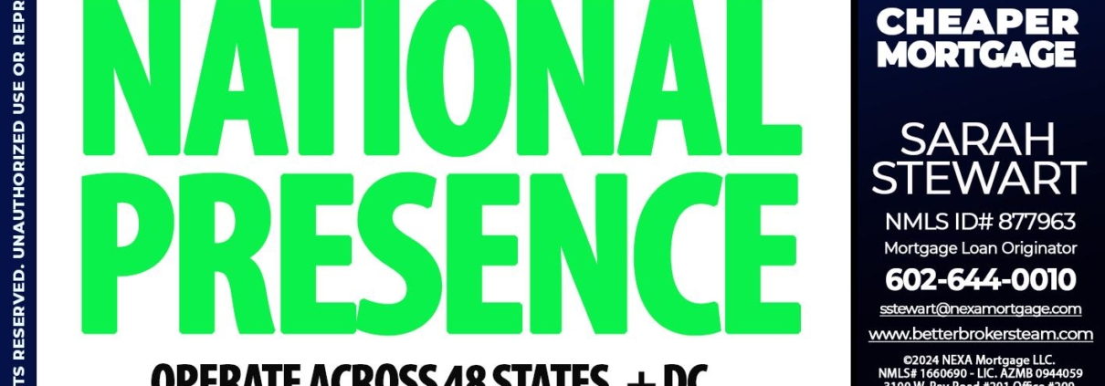 Hi, my name is Sarah Stewart. I’m a Loan Officer with NEXA Mortgage LLC., offering personalized mortgage solutions, fast customized quotes, great rates and service with integrity.